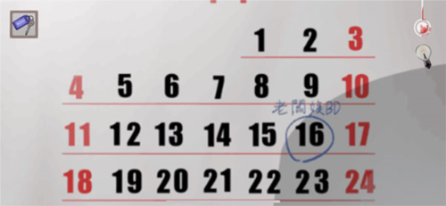 3、进入下一个场景公司后,玩家前往墙上的日历处进行查看,然后就能获得信息是丽芯的生日【11月16日】