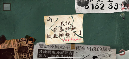 1、玩家进入第二章跟踪,首先查看一下墙上的海报,就能获得信息是【0112】,记住【何兴童超级喜欢这位明星,就只有她的生日会记住】。