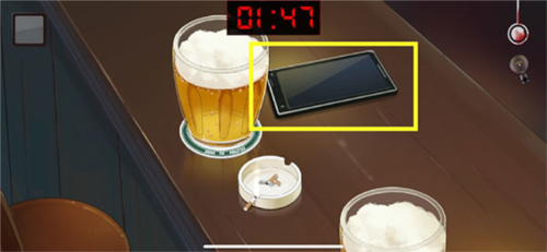 6、玩家需要回到酒吧再次进入剧情,然后就会提示【偷看何兴童的手机】,而开机密码就是海报上女明星的生日【0112】
