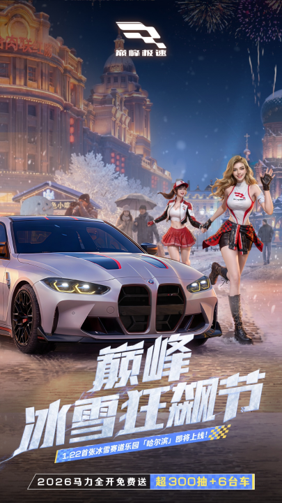 巅峰极速oppo渠道服,2026马力全开,新赛季免费送超300抽+6台车!《巅峰极速》26S1新赛季开启,雪地狂飙、冰雪搜打撤、双王降临、六骏送福、共创冰雕城...巅子们也有自己的冰雪节!全新赛道「哈尔滨」上线,开启你的冰雪乐园!全新玩法「雪境夺宝」推出,巅峰搜打撤、百万撤离送任一车展车辆!全新限定传奇「宝马 M4 CSL」首发登场、全新大东北特色限定时装、语音包、动作等限时送出!更有全新珍藏传奇「驭影双王」即将降临、全新马年主题爽玩新服即将开启,更有更多惊喜福利活动等你解锁!