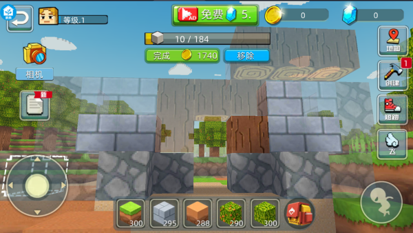 4、穿梭在不同的场景中,点击创造可以制作出不同的建筑物,操作简单。