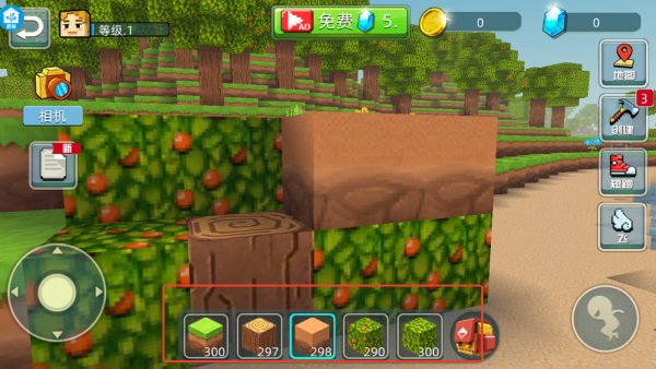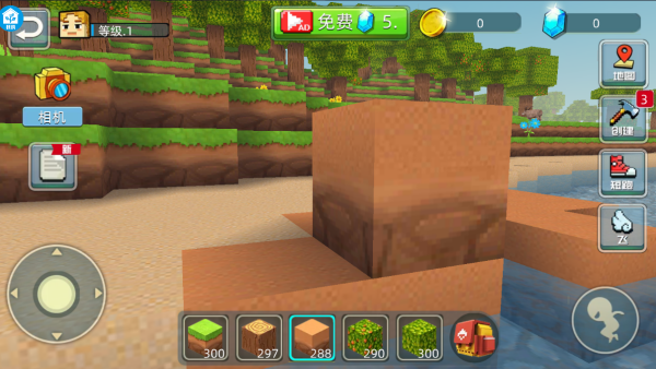 2、第一人称视角穿梭在新的世界中,点击下面的方块开始建造,点击即可创造。