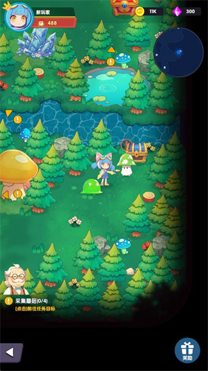 2、进入地图后滑动屏幕可以控制角色移动,当遇到不同的精灵后会进入战斗。