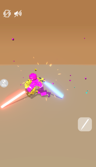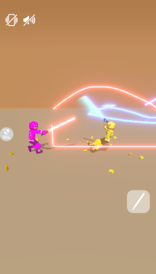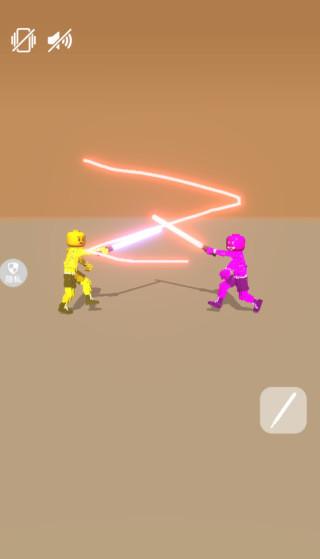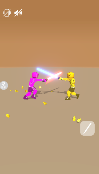 1、进入游戏,控制游戏中的火柴人自由的对战,使用光剑开始对战。