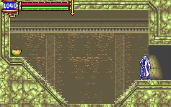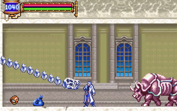 到达隐藏房间。之后再回来,就可以看到在空中跳舞的亡灵了,打她可以得到第5个黄色魂魄(效果是LUK能力上升1个等级),还有条骨龙,打它可得到第6个黄色魂魄(效果是,使CON能力 上升2个等级)。进左边的入口,打跳跳男又可得第15个红色魂魄(效果是,按上+B放出跳跳男),再一直左行, 来到这里