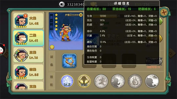 4、【巧组CP有加成 战力飙升】四娃五娃同上阵,双双攻防飙升;小金刚,娃娃们的爱,搭任意娃娃组CP共享属性加成。