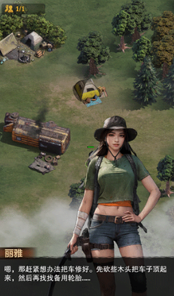 5、来到希望镇,点击地图上的树木可以砍树,点击废弃的建筑可以修复,点击垃圾可以探索