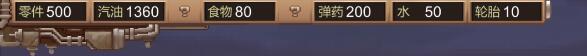 2、查看你的仅剩的物资,查看你的零件、汽油、食物和弹药等等。