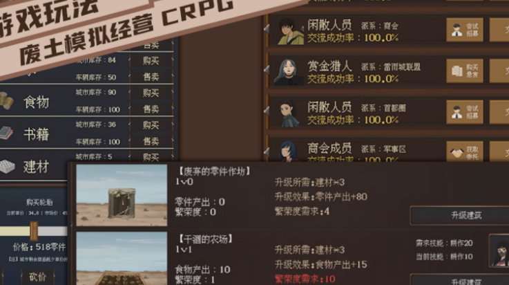 1、游戏玩法:废土模拟经营crpg。
