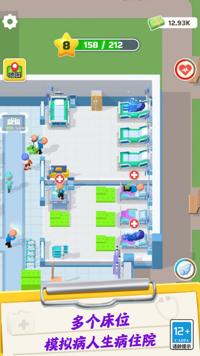3、不断的解锁新的床位,接受更多的病人,赚取丰富的奖励,提供及时的救治。