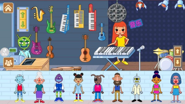 3、选择自己的角色,在这里欢乐的弹琴,玩音乐;