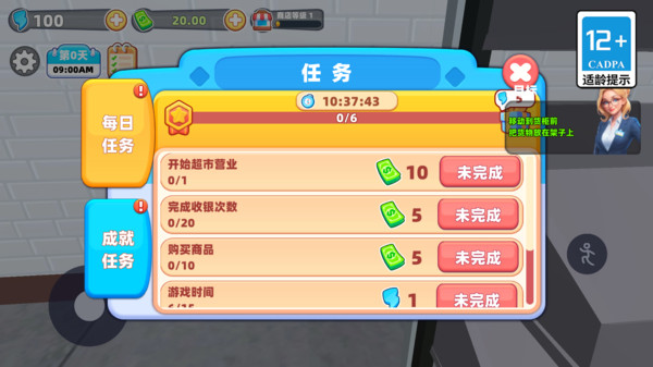1、进入游戏,你考验看到大屏幕上会给你布置各种任务,开始超市营业吧;