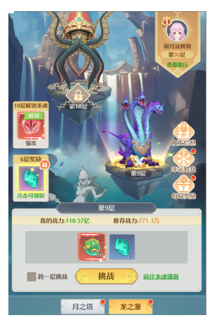 2、龙之瀑随着层数提高,所占据的魔物实力越加强大,当然也有几率获取更加强大的龙魂。