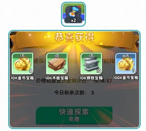 快速挂机,可领取2小时的挂机奖励。