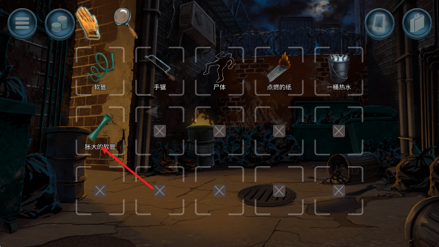 点击场景中的物品可拾取或观察,如【尸体】【工具】【文件】等。