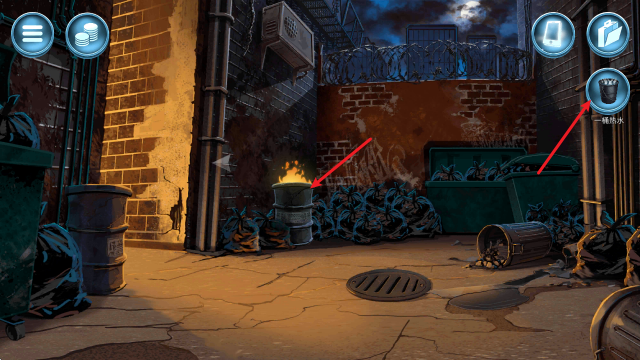 6、在里屋当中可以获得桶和报纸,水龙头处接满水后,放到火上得到热水桶。