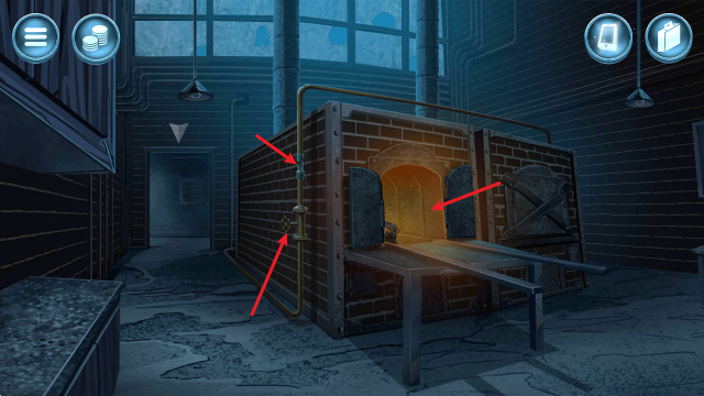 8、最后将尸体放入焚化炉中,将软管接到天然气上,打开阀门,放入燃烧的报纸即可。