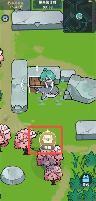 2、进入峡谷中,在箱子旁点击【开箱】即可搜索资源。