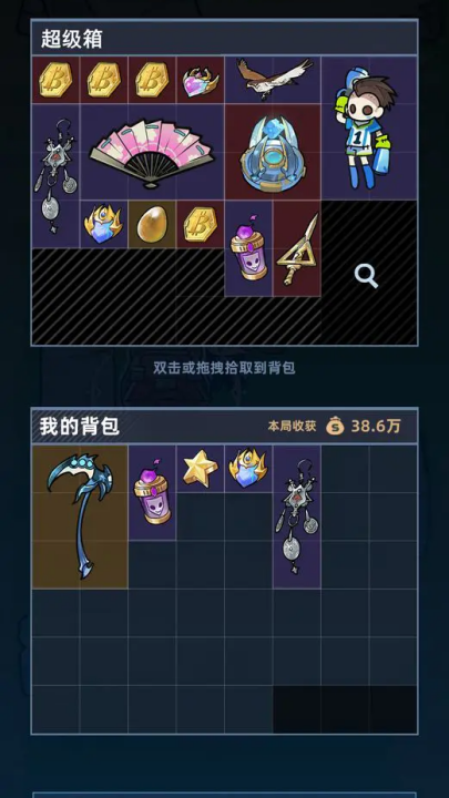 3、双击或拖拽需要的物资到背包,拖拽物品向下可丢弃。