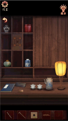 11、翻看柜台的书本以及观察4个罐子的茶叶形状,调整机关的滑块位置,取得【木牌末】。
