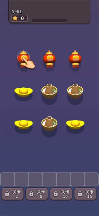 2、玩家可以点击关卡中的物品放到游戏下方的方块中;