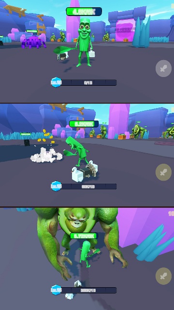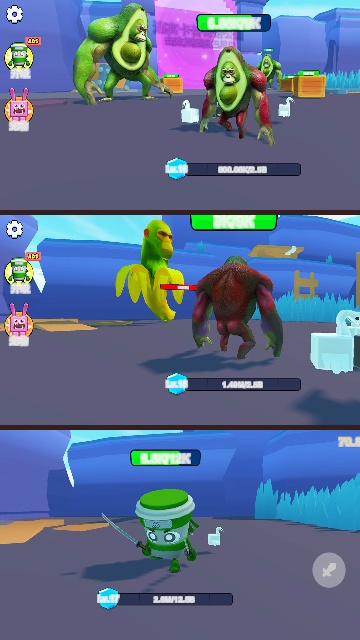 2. 切换不同形象的角色(如牛油果形象、香蕉形象),继续收集资源、提升角色等级;