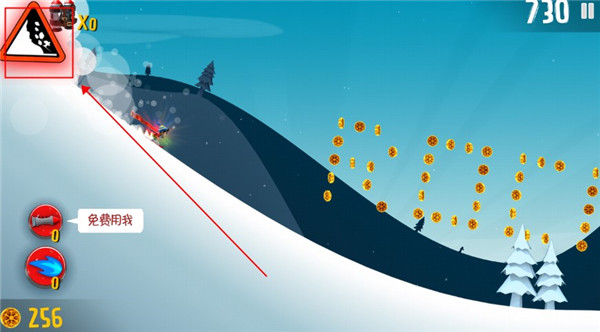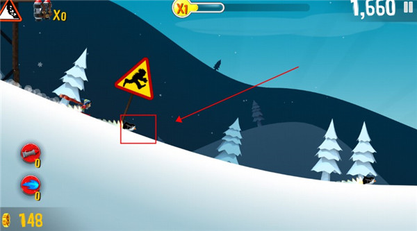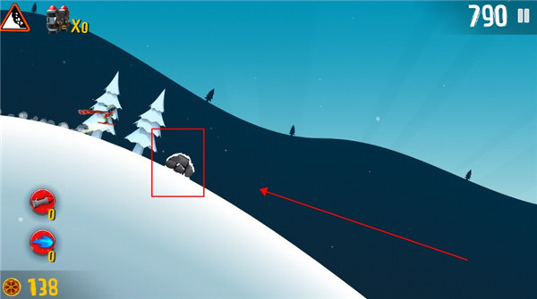 1、合理利用滑雪途中的道具,它们都可以帮助你暂时避免困境。