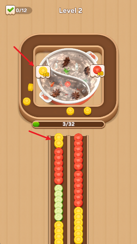 火锅流游戏(Hotpot Flow)中,玩家们将会围着热腾腾的火锅来投放食材,食材绕着火锅旋转,到达指定区域就会自动的进入,从而慢慢的完成一顿丰盛美味的火锅!每一关都将会解锁各种不同的食材,并且随着挑战的进行,还能解锁更多场景和锅子,制作出各式各样的美味火锅!