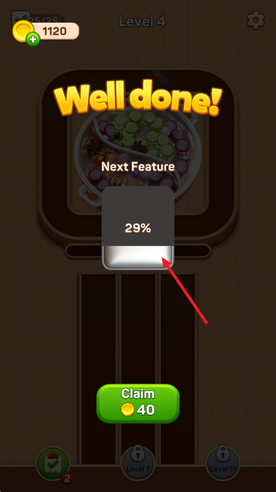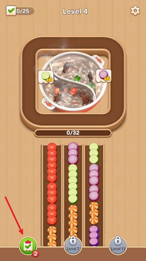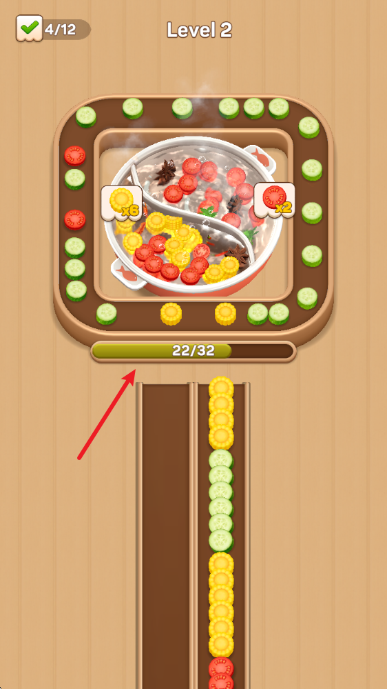 4、顺利将所有食材放入锅中即可过关获得奖励。