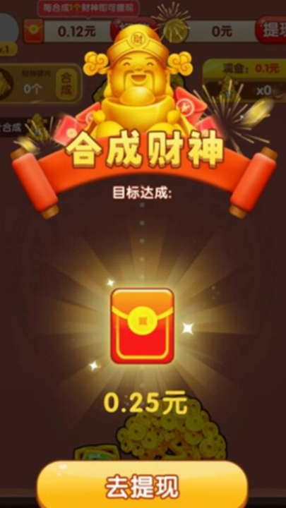 财神临门赚钱游戏是一款休闲益智类闯关游戏,此款游戏采用卡通风格打造,以合成玩法为核心。游戏内玩家将控制各种黄金玉器下坠,你可以让相同的物品进行合成,从而获得丰富的游戏奖励。对财神临门赚钱游戏感兴趣的玩家不要错过,欢迎大家在本站下载游玩。