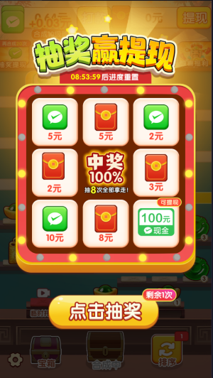 5、合成一定次数会激活抽奖功能,可以随机得到一笔奖励。