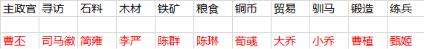 通过反复运用以上方法推算,我总结出了以下的内政武将推荐表。