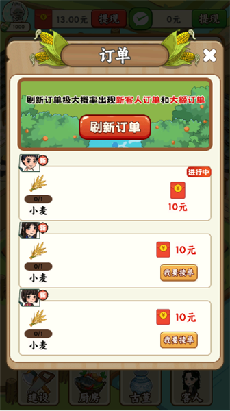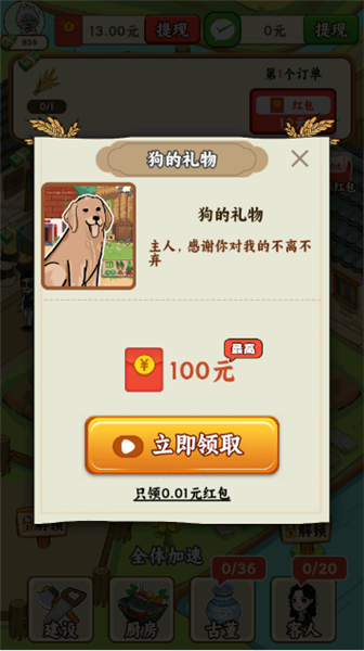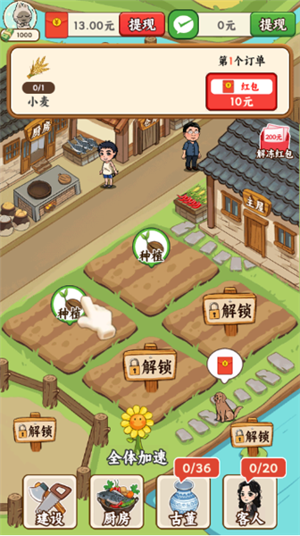 2、红包提现:通过经营赚取的红包可以在达到一定数额后进行提现,增加了游戏的现实奖励属性。