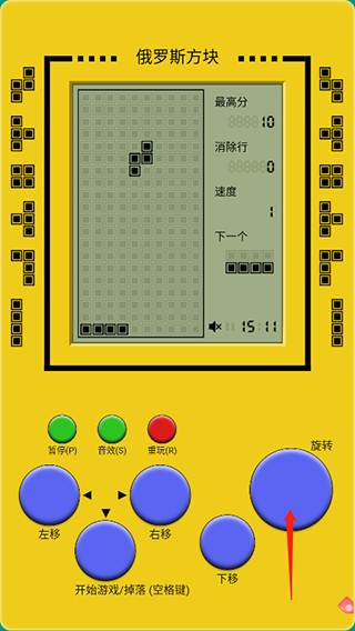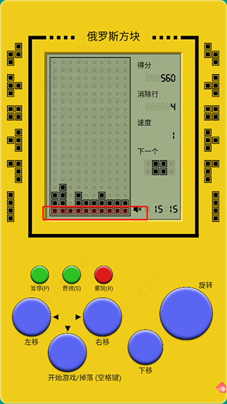 1、俄罗斯方块手机版支持轨迹球、键盘、以及触屏三种控制。