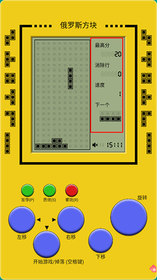 这是是一款非常经典怀旧的俄罗斯方块游戏,重温儿时的记忆,找回童年的快乐。操作简单易上手,怀旧感十足.假如你怀念童年的游戏掌机,那么你不应该错过这款游戏!就让这款游戏给你童年的乐趣吧