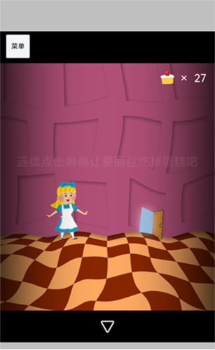 5、收集到蛋糕之后,爱丽丝落到地面之后,点击屏幕给爱丽丝吃蛋糕,然后她就会缩小,如果不够小是无法通过小门的,所以需要再来几次,继续收集蛋糕让爱丽丝变小,大概玩耍三次就可以啦!