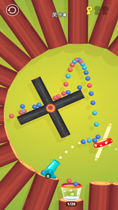 将所有桶装满球以过关。用手指移动各种物体以改变射出球的方向。 巧妙地瞄准!完成关卡即可解锁新大炮。你能找到珍藏版大炮吗?
