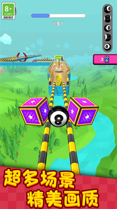 4、有趣内容和逐渐变难的关卡让玩家体验后欲罢不能,把握好小球的平衡,精心设计的关卡难度曲线让游戏更具挑战性。