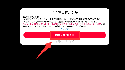1、点击个人信息保护引导里的同意并继续。