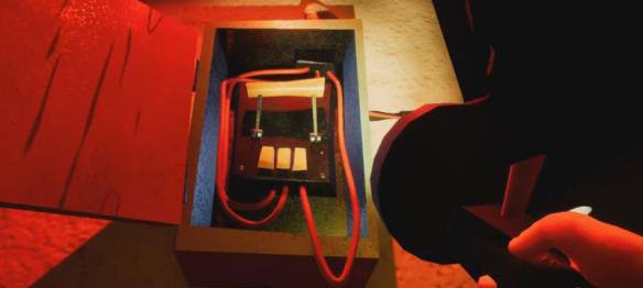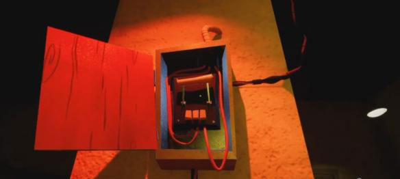 继续直走,在尽头有一个人偶旁边可以拿到手电筒,继续到尽头的屋子,屋子内有个铁栏门无法打开,旁边有个发动机,但是去发动机的门在漏电。