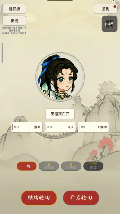 1、进入游戏后,在主界面点击“开启轮回”,由此踏上正式的修行旅程。