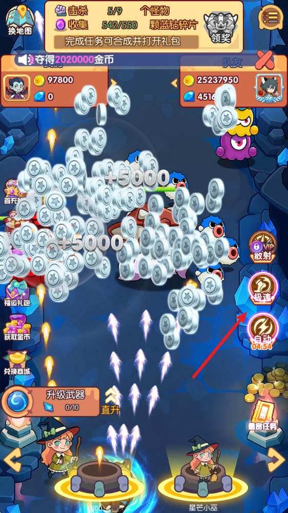 2、右侧可以开启加速和自动模式,帮助你更畅快的消灭敌人。
