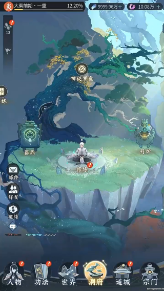 洞府升级与资源获取:升级洞府能提升自动吐纳灵气的速度。升级洞府需要九曲木和灵石,九曲木可通过宗门贡献兑换获得。提升道院地位也能提升洞府上限,道院地位可通过完成道院悬赏和试炼任务获得威望值提升