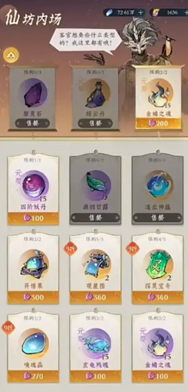 注意:内场会刷新1折聚灵石!在重点境界突破后(例如筑基前期突破到筑基中期),坊市+仙坊外场会自动免费刷新,仙长们可以在境界突破前爽快地采购一番。