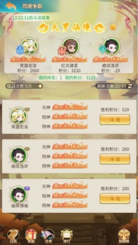 1.在群仙会中,道友可以挑战比自己排名高的道友,在限定回合内将其击败,则挑战成功,双方排名互换并获得奖励;反之挑战失败,不获得奖励