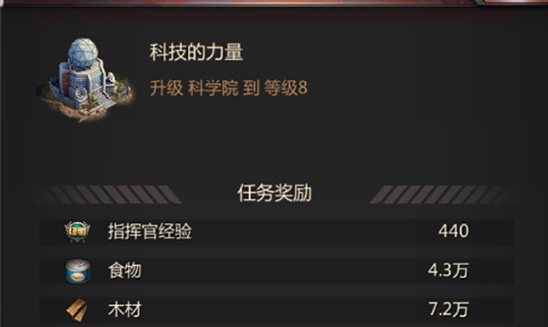 4、科学院和只能系统研究院的主要提升方向也是以建筑速度和研发速度为主,目的就是帮助我们可以在7天内升到21级,完完整整的获取到求生之路的全部奖励。