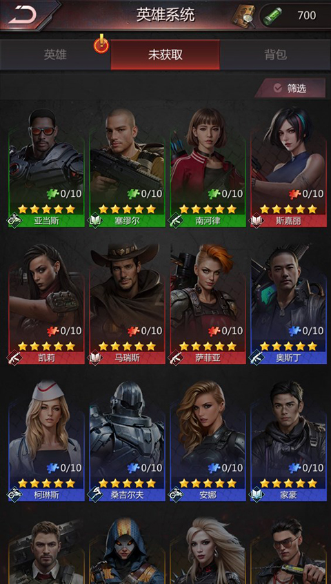 英雄种类:(部队)勇士、射手、骑手。(专属)勇士、射手、骑手。(其他)内政、改装车。