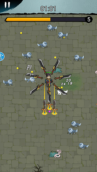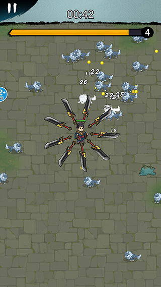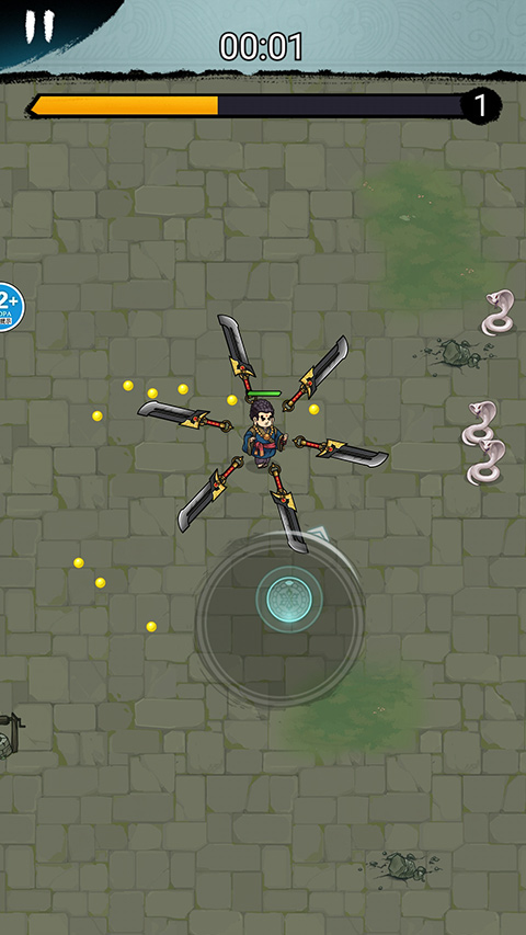 2、我们可以通过滑动屏幕控制角色移动,角色身上的飞刀会自动转动攻击敌人,