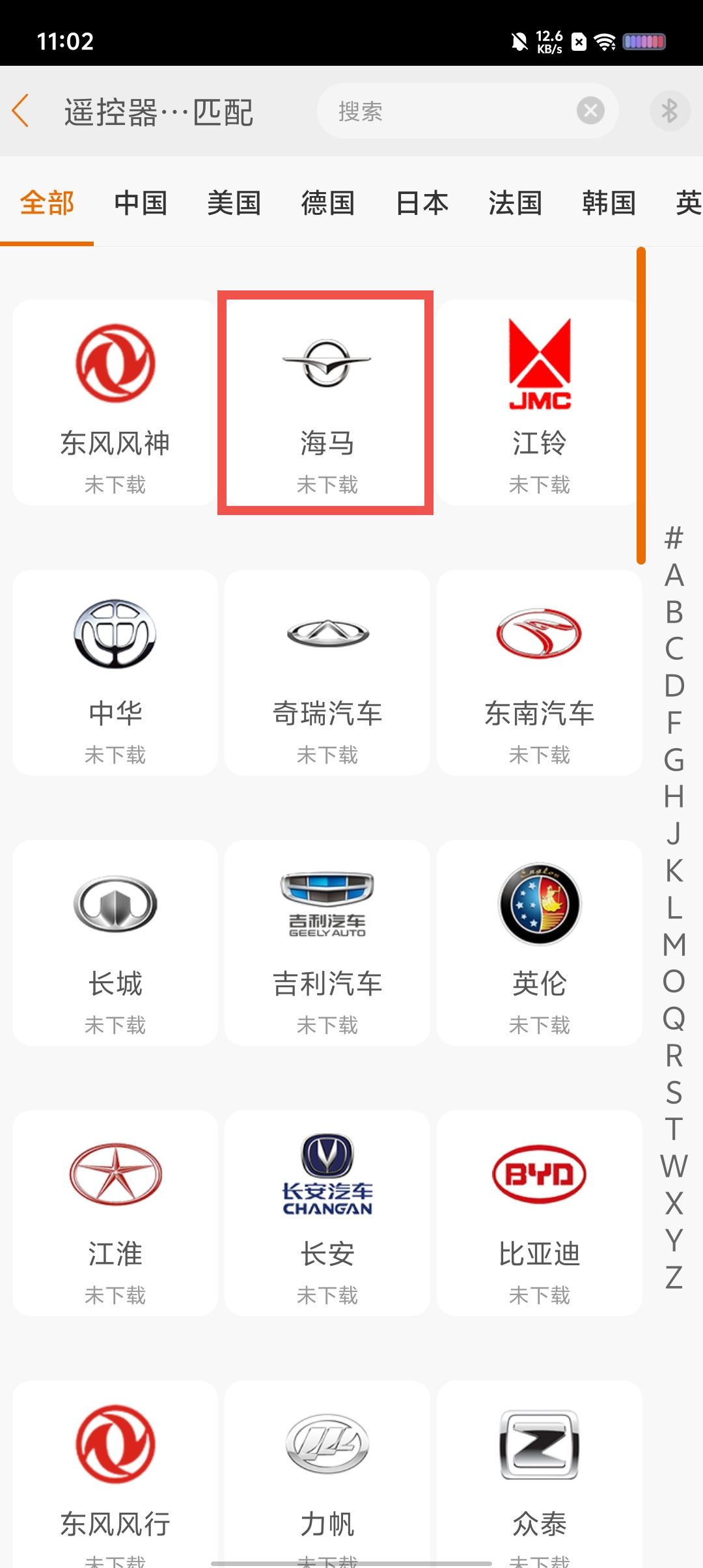 2、选择想要进行匹配的品牌。
