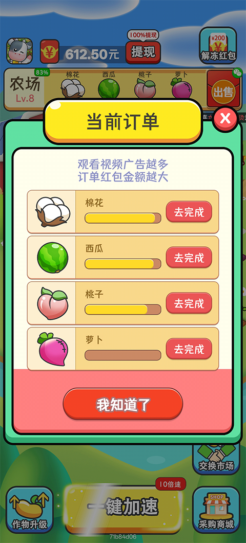 在农场通过种植收获农作物用于换取农场订单红包,红包可以兑换现金!